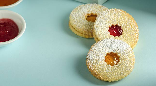 توزع المربى على الدوائر وتُغطى بالدوائر المُقطعة.