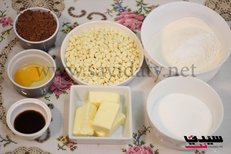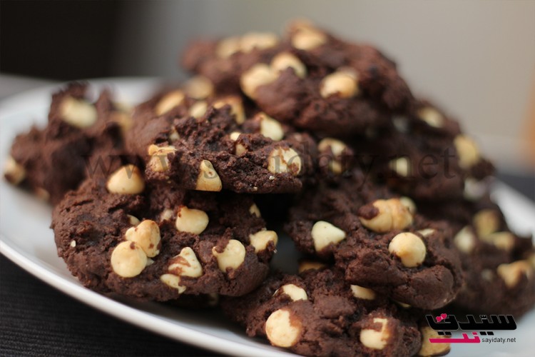 كوكيز الكاكاو بالشوكولاتة البيضاء بالصور خطوة بخطوة