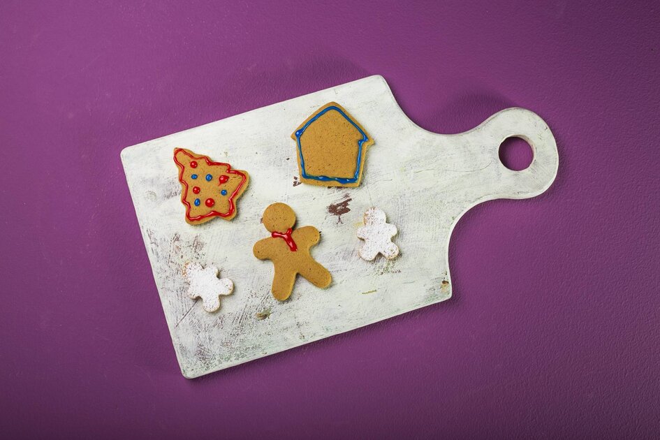 يسخن الفرن مسبقا على حرارة 350 درجة فهرنهايت. تفرد العجينة بثخانة ¼ بوصة على سطح مرشوش قليلاً بالطحين. تقطع العجينة بقطاعة الكوكيز بشكل رجل خبز الزنجبيل بقياس 5 بوصة. توضع قطع الكوكيز على صينية الشوي مع ترك مسافة 1 بوصة بينها