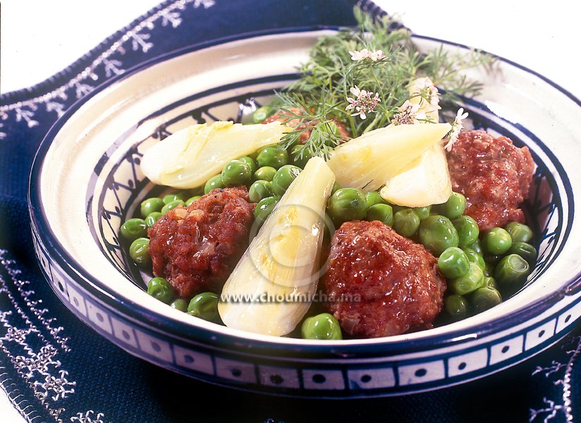 كويرات اللحم المفروم بالبازلاء (الجلبان) والشمر (البسباس)