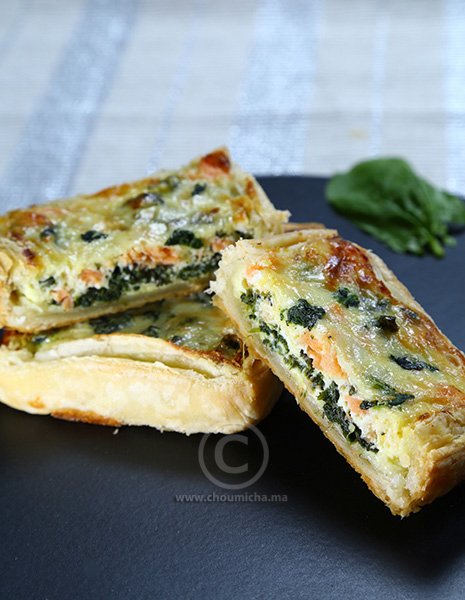 - يقدم كيش سمك السلمون المرقط والسبانخ دافئا.