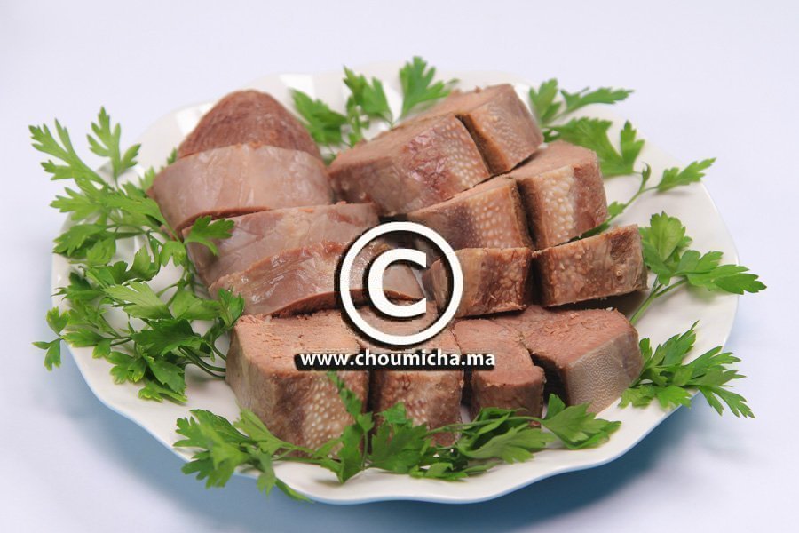 - في طنجرة يوضع لسان العجل، يضاف إليه رأس الثوم، الأعشاب المنسمة، الفلفل الأسود، القرنفل، الفلفل الأسود والخضر.