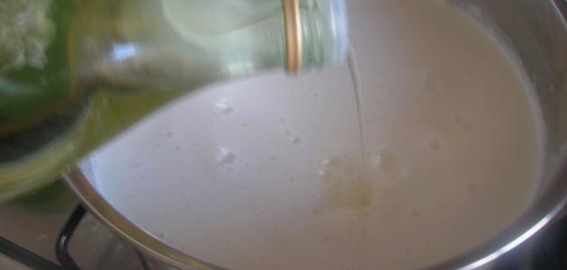 - يتمّ إطفاء النار، ويترك الحليب ليستقر لمدّة دقيقة.