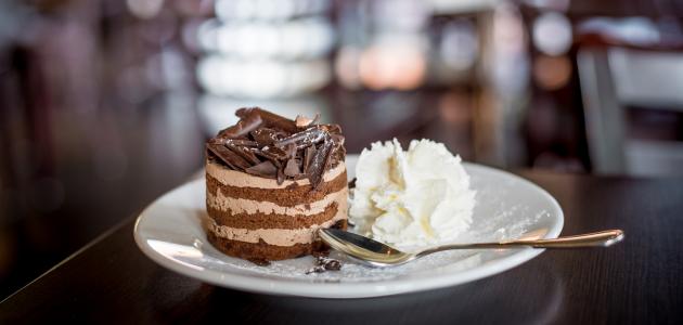 - نرش الكاكاو على الوجه ثمّ نضع قطع الشوكولاتة ونقدمها.
