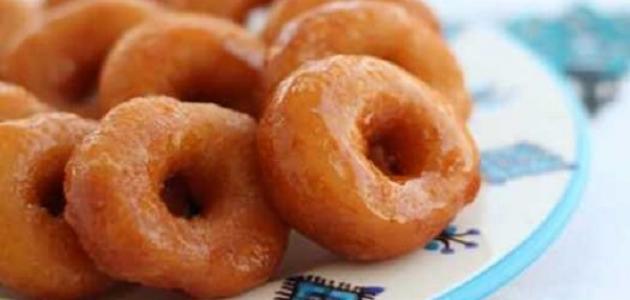 - تفرد العجين لنحصل على عجين بسمك واحد سم تقريبا ،و تقطّع العجين إلى دوائر مثقوبة من الوسط. أو من الممكن أن تشكل العجين على هيئة كرات صغيرة، ثم تبرم باليد لتصبح على شكل شريط ثم يلصق الطرفان لنحصل على شكل دائرة مبرومة.