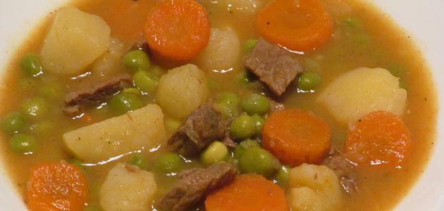 - تُغسل الخضروات وتعّد كلٌ حسب نوعها وتقطّع مكعبات ” الكرنب والكرفس يُترك صحيحاً دون تقطيع”، ثمّ تُضاف الخضار للبصل والماء على النار.