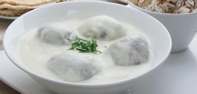 - نرص قطع الكبة في صينية بمسافة متباعدة بين الكرة والأخرى لتبرد، ثم نضعها في طبق مناسب، ونضيف إليه قطع اللحمة، ثم نسكب عليه اللبنية المعدّة مسبقاً، ونقدمها ساخنة.