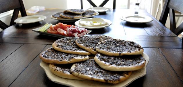 مُكوّنات الحشوة: كوب من الزعتر، مخلوط بنصف كوب من زيت الزيتون.