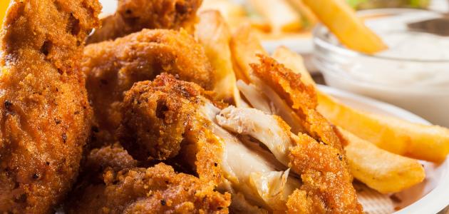 يتمّ تقطيع صدور الدجاج إلى قطع طولية، ويتم غسلها وبشكل جيّد ومن ثم تصفيتها، ثمّ يتمّ وضعها في مقلاة من الزيت النباتي على النار، وتوضع فوقه قطع الدجاج، ونستمرّ في التقليب حتى يجف الماء عنه، ثمّ توضع فوقه شرائح البصل ويتمّ تقليبه معه، ثمّ وبعد ذلك توضع فوقه البهارات بالإضافة إلى الملح والفلفل الأسود ويتمّ تقليبه مع بعضه البعض حتى يذبل البصل وينضج الدجاج، ثم يتم وضعه جانباً.
