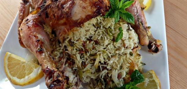 الدجاج المحشي بالأرز والمكسّرات