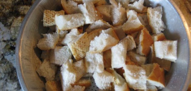 - قطعي الأطراف إلى مكعباتٍ متوسطة الحجم، وافرديها في صينيةٍ خاصة بالخبز، وحمّريها على حرارةٍ منخفضة حتى تكتسب لوناً ذهبياً وقواماً مقرمشاً، واتركيها حتى تبرد تماماً، ثمّ احتفظي بها في أكياس التفريز وضعيها في الفريزر لحين الاستخدام، ويمكنك استخدامها في الفتوش والسلطات المتنوعة وبعض أنواع الشوربات.