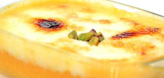 - سكب نصف كمية قرع العسل المهروس في قاع الصينية، وفرده جيداً.