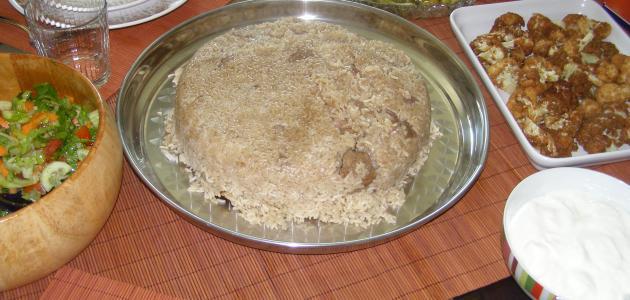 - ارفعي القدر عن النار ثمّ اسكبي المقلوبة في طبق، وزيّني الطّبق باللوز والصنوبر.