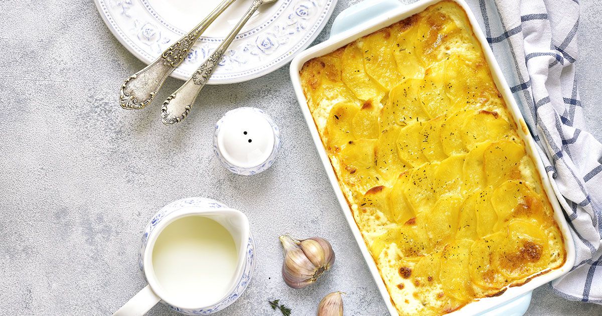 1- في قدر على نار متوسطة، ضعي الزبدة، الثوم، الحليب وكريمة الطبخ. عند الغليان، أطفئي النار ونكّهي بالملح والفلفل الأبيض. 2- في صينية فرن، ضعي طبقة من شرائح البطاطس ثمّ زيدي مزيج الكريمة. أضيفي جبن الموزاريلا على الوجه. 3- حمّي الفرن على حرارة 200 درجة مئوية. أدخلي الصينية إلى الفرن لـ70-80 دقيقة حتى تنضج البطاطس ويذوب الجبن. 4- خرجي الصينية من الفرن وقدّميها على سفرتك. ألف صحة!