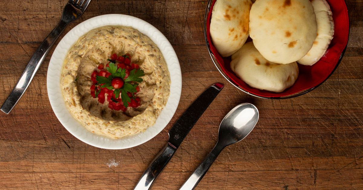 5- ضعي متبل الباذنجان في طبق التقديم. زيّني بالنعناع، البقدونس، الطماطم وزيت الزيتون. ألف صحة!