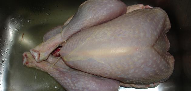 - نفرك الدجاجة في الخليط، فتصبح رائحته زكية، ويترك حتى تتغلغل فيه الخلطة، ثم نغسله بالماء جيّداً مرّة أخرى، ويكون جاهزاً للطهي.
