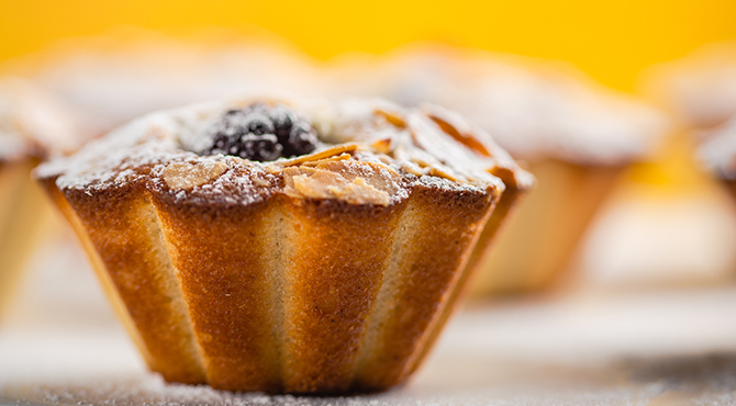 ترفع الكيكات بلطف من القوالب وترش بالسكر الناعم وتقدم