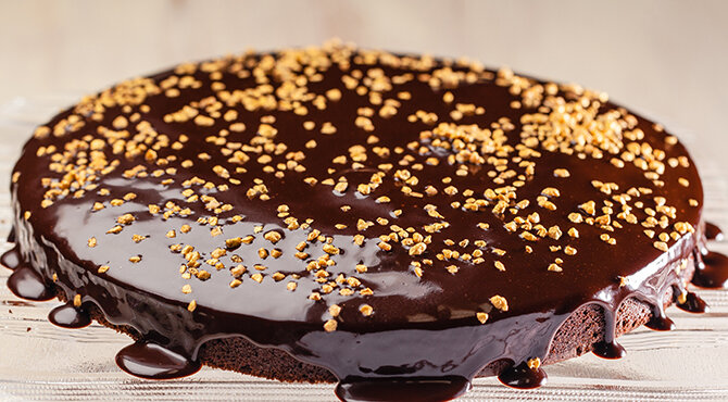 يزين بطبقة الشوكولاته اللامعة أو يرش بالسكر البودرة.