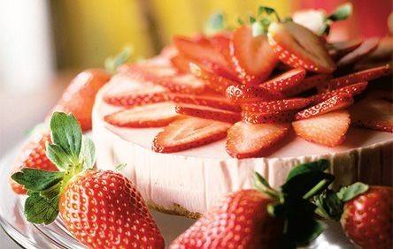 بهدوء إلى أن تحصلي على صلصة سميكة - وزعي صلصة الفراولة على سطح الكيك، ادخليه الثلاجة إلى أن يتماسك تماماً
