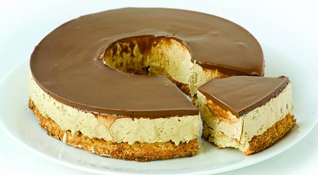 يُصب الخليط على كريمة القهوة ويوضع في الثلاجة