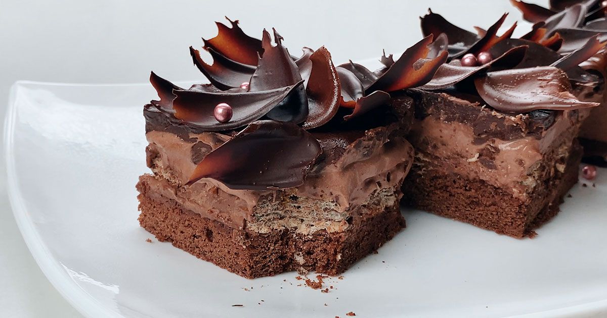 14- قطّعي الحلى الى مكعبات، زيني الوجه باشكال الشوكولاتة ثمّ قدميه على سفرتك.