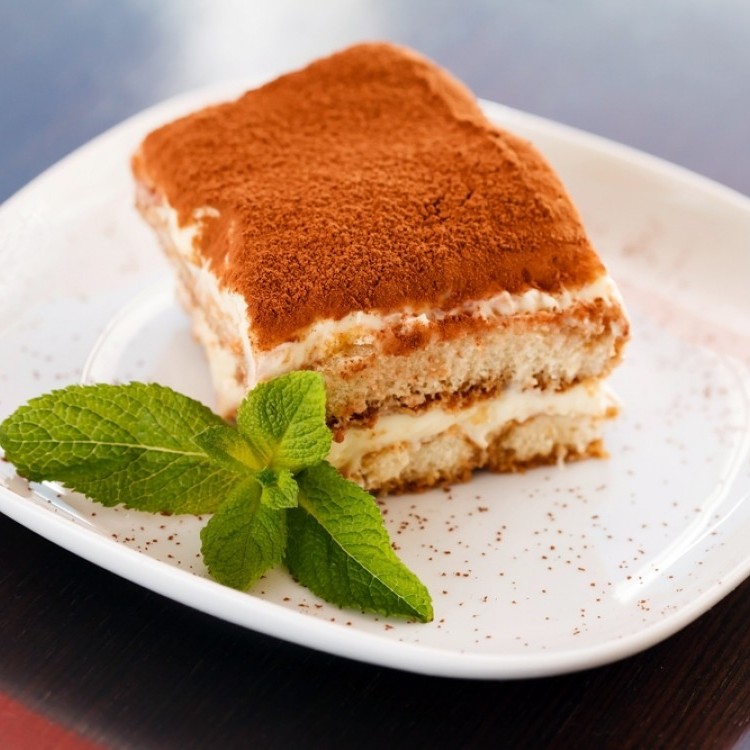 5. يرش سطح الكريما الأخير ببودرة الكاكاو بواسطة مصفاة صغيرة.