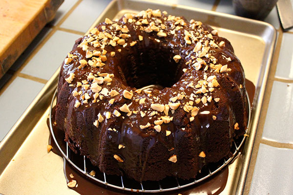 3. تخبز لمدة 45-50 دقيقة أو حتى يخرج عود أسنان منها نظيفا. تترك لمدة 5 دقائق، ثم تقلب على رف سلك لتبرد.