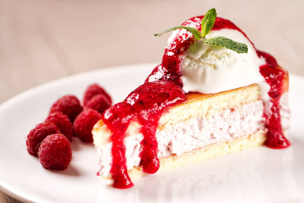 - في وعاء التقديم، توضع قطعة الكيك ويملىء وجهها بالآيس كريم .