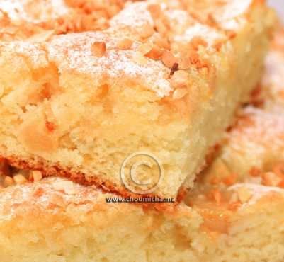 - يزين الكيك بالسكر الناعم واللوز المجروش.