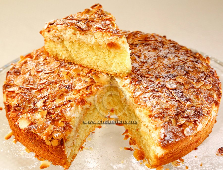 • عندما ينضج الكيك يخرج من الفرن، يغطى سطحه بكريمة جوز الهند ويزين بالكمية المتبقية من رقائق اللوز ثم يعاد إلى الفرن لمدة 10 إلى 15 دقيقة حتى يصبح سطحه ذهبي اللون.