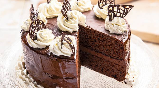 تخفق الكريما الباردة وتضاف الى مزيج الشوكولاته وتقلب.