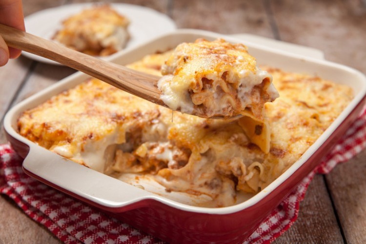 11. غطي اللازانيا بطبقة من البشاميل وأدخليها الفرن على درجة حرارة متوسطة 15 دقيقة.