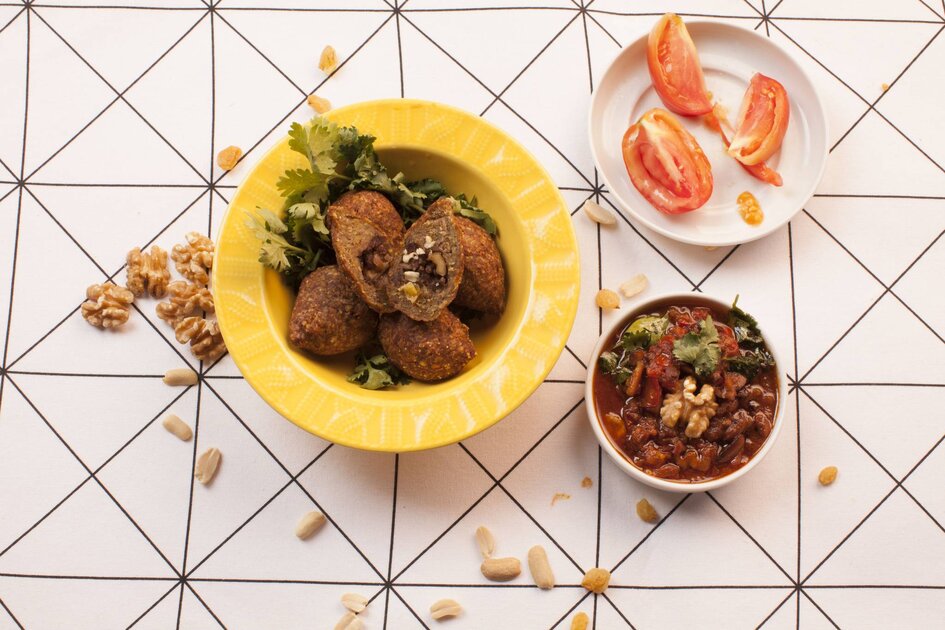 لحمة بالبرغل محشية لحمة مفرومة بالسوداني والزبيب