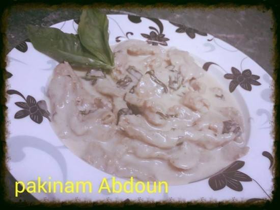 - ثم نضع الجبنة المبشورة ونقلب ونضع باقی كمية الريحان ونقلب ونقدمة فورا ساخناُ .