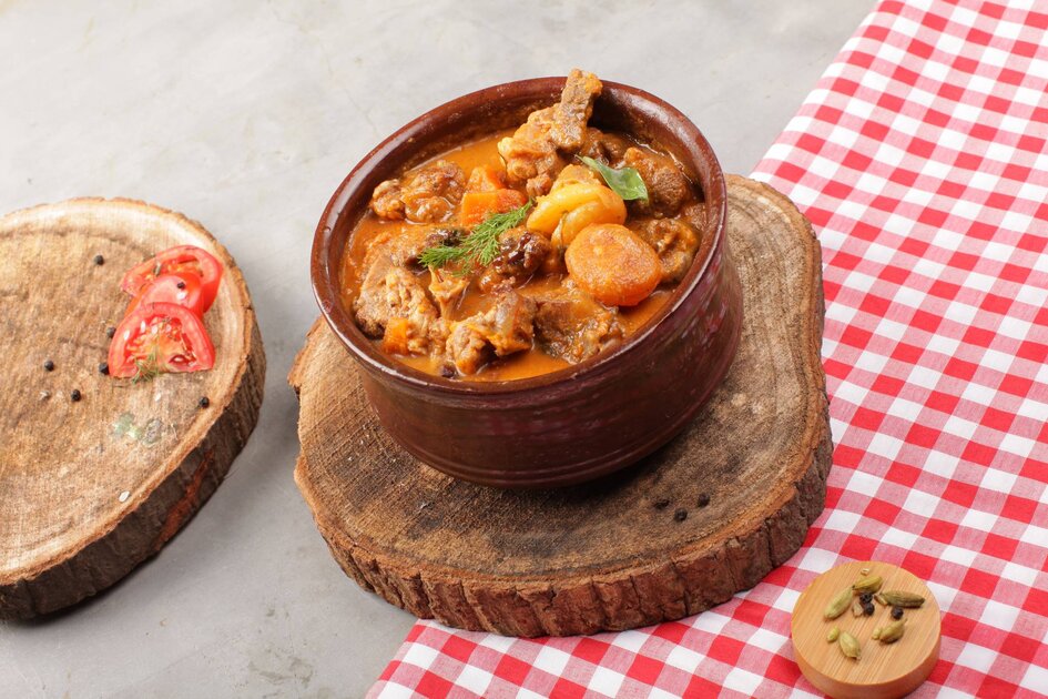 نشوح اللحمة مع الملح والفلفل اسود و القرفة الخشب و القرنفل الحبمع المكونات ثم يضاف الماء وتدخل الفرن لمده ساعة على درجة حرارة 180