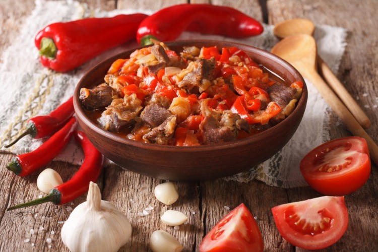 لحم الخروف المطهو بالطماطم والفلفل الأحمر