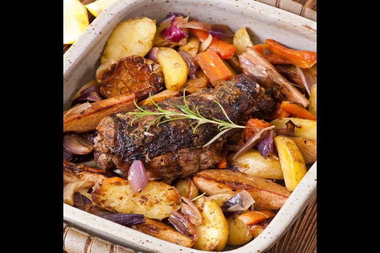 5. ضعي اللحم في صينية الفرن واشويه لمدة 20 دقيقة ثم ارفعيه من الفرن.