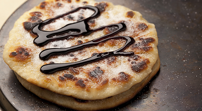 تسخن مقلاة واسعة , يوضع القرص في المقلاة على نار متوسطة حتى يجف من الاسفل ويبدأ بالانتفاخ