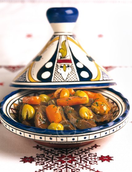 • يضاف الزيتون الأخضر في الطنجرة مع الجزر، القزبر والبقدونس ثم يستمر الطهي إلى أن تتختر الصلصة وتنضج الخضر.