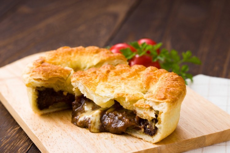 3. تفرد قطعة كبيرة من الفطائر على شكل مربع، وتدهن بالكاتشاب من الأعلى ثم ترش بمزيج اللحم والمخلل والجبنة المبشورة. بعد الانتهاء، تُغطى بقطعة إضافية من الفطائر.