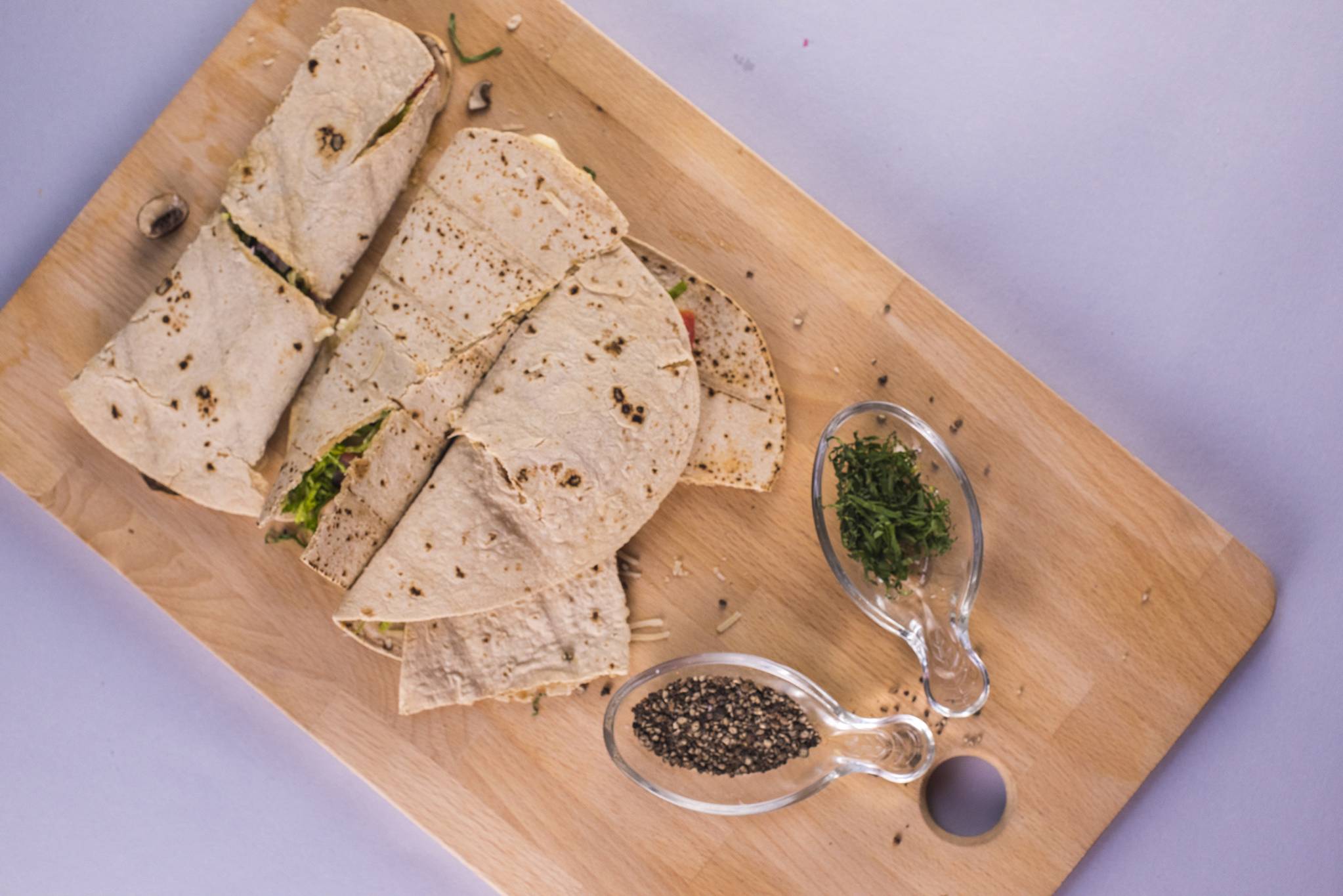 للتقديم، توضع قطع خبز البيتا على طبق التقديم، ويفرد عليها بالتساوي ½ ملعقة من مزيج المايونيز ويوضع على وجهها الخس والفطر والطماطم والبصل والمتبقي من مزيج المايونيز.