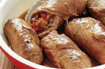 2.  تحشي كل قطع من البفتيك بالعصاج وتلف بالخيط او تشوح الخضر في حاله استخدامها مع ملعقه زبد ويضاف اليها البقدونس والبصل ثم تحشي وحدات البفتيك وتلف بالخيط.