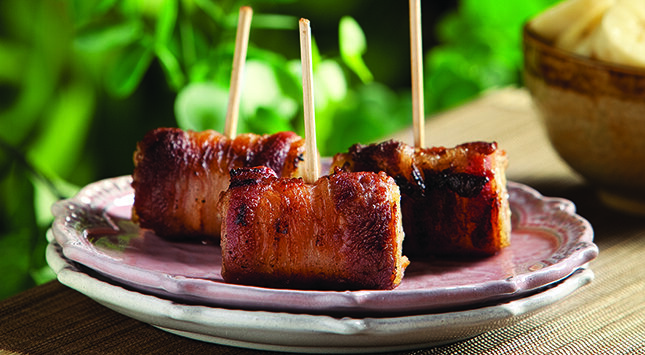 لقيمات الموز المشوية مع اللحم البقري المقدد والقيقب