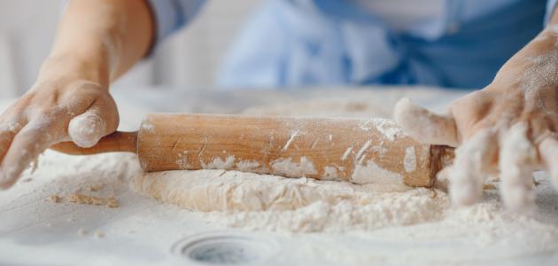 - ننخل الطحين في وعاء ثمّ نضيف الملح ثمّ الزبدة المذابة، ونخلط المُكوّنات بأطراف الأصابع.