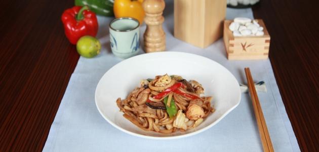- نضيف النودلز المسلوقة للخليط ونخلط حتّى تتشبّع النودلز بالنكهات.