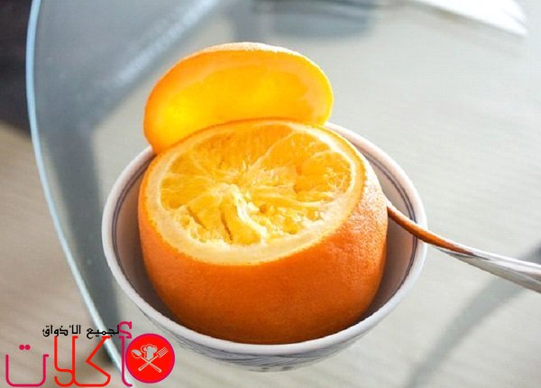 نغطي حبة البرتقال بالشريحة المقصوصة، ونضعها بوعاء مناسب .