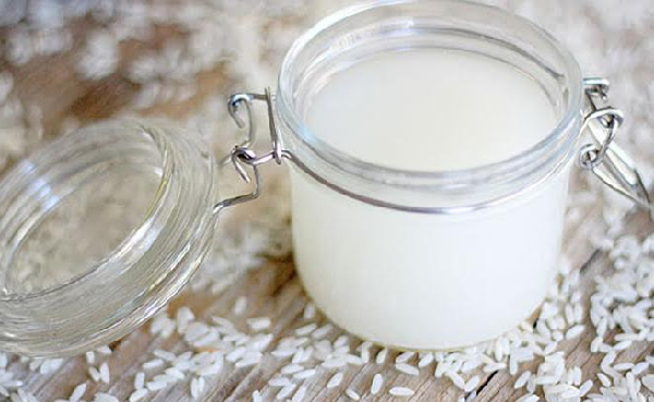 انقعي الأرز في الماء لمدة من 15 وحتى 30 دقيقة، ثم قومي بتقليبه حتى يتحول لون الماء للأبيض، و قومي بفصل ماء الأرز في وعاء زجاجي وأحكمي إغلاقه، يمكنك حفظه في الثلاجة حتي أسبوع.