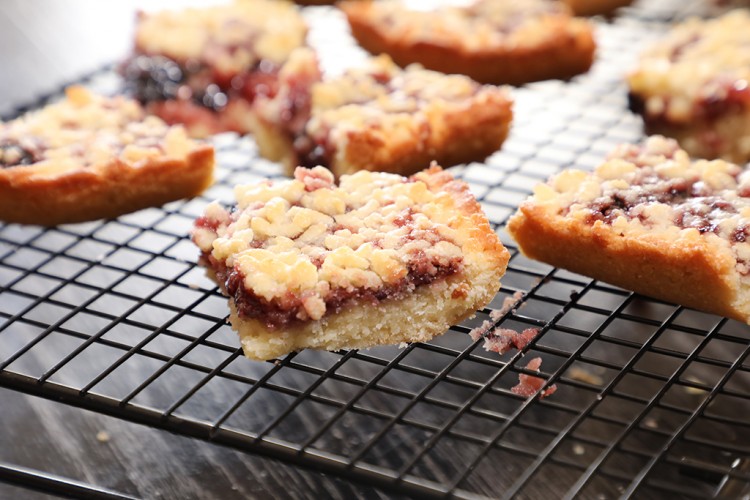 - وزعي مربى التوت فوق العجينة، وأخرجي ربع الكمية التي وضعت في الفريزر وابشريها على الوجه.