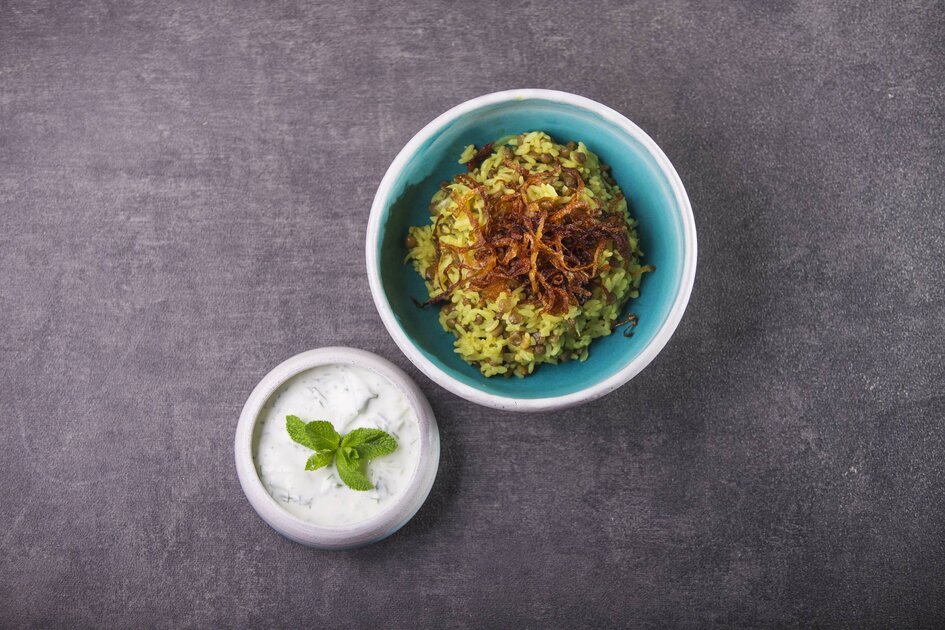 مجدرة مع اللبن بالخيار