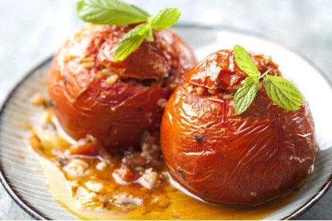 - ترص حبات الطماطم فى إناء مدهون بالزبد ويغطى جيدا ونضعة على نار هادئة لحين أن ينضج يقدم ساخنا بالهنا والشفا.